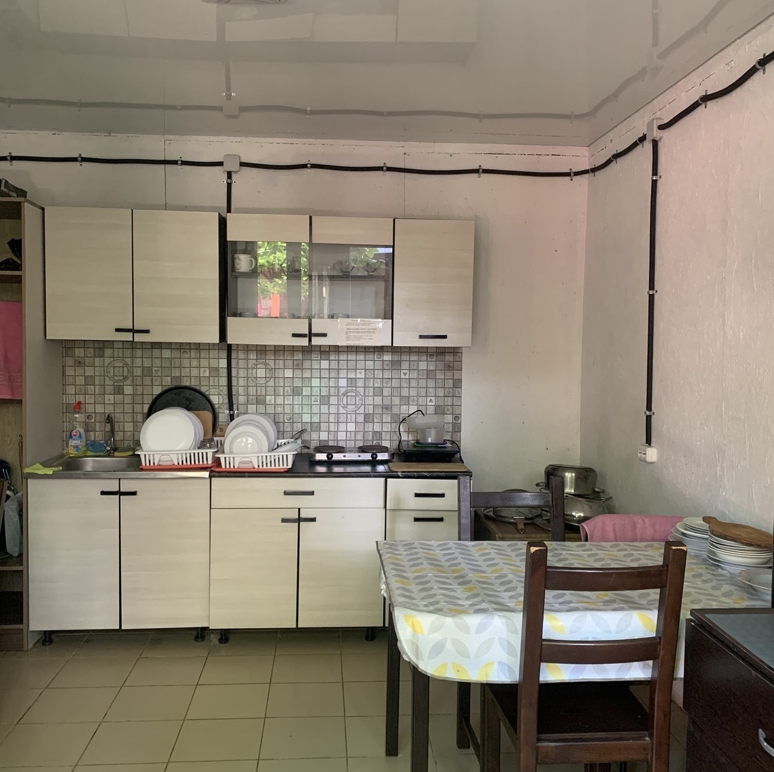 В одной комнате: двуспальная кровать, диван-кровать, односпальная кровать, телевизор, холодильник, сплит-система.